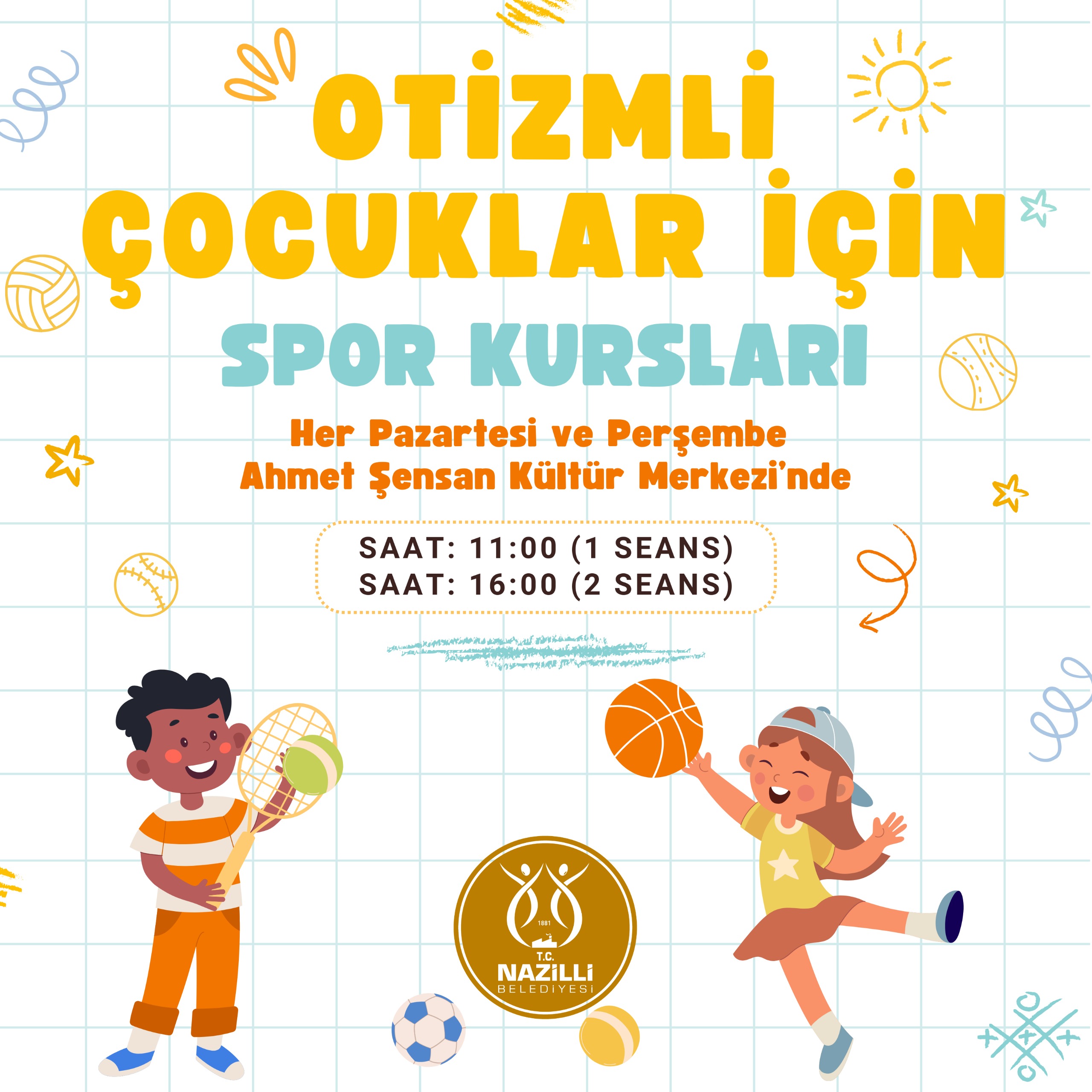 Ayrıca otizmli çocuklara yönelik spor kursları da pazartesi ve perşembe günleri Ahmet Şensan Kültür Merkezi’nde; 1. grup 11.00’da, 2. grup ise 16.00’da yapılıyor.