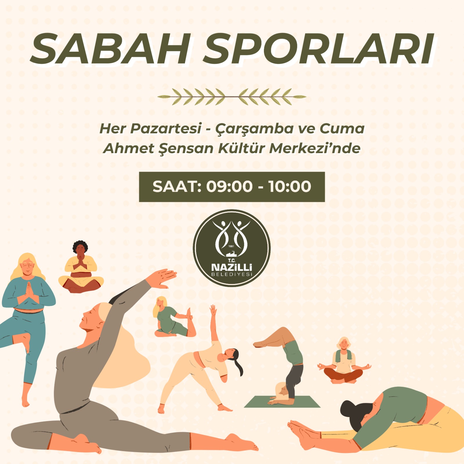 Moda tasarım kursu pazartesi, salı, perşembe ve cuma günleri 08.30–17.00 saatleri arasında İsabeyli Hizmet Binası’nda düzenlenirken, sabah sporları kursu pazartesi, çarşamba ve cuma günleri 09.00–10.00 saatleri arasında Ahmet Şensan Kültür Merkezi’nde gerçekleştiriliyor.