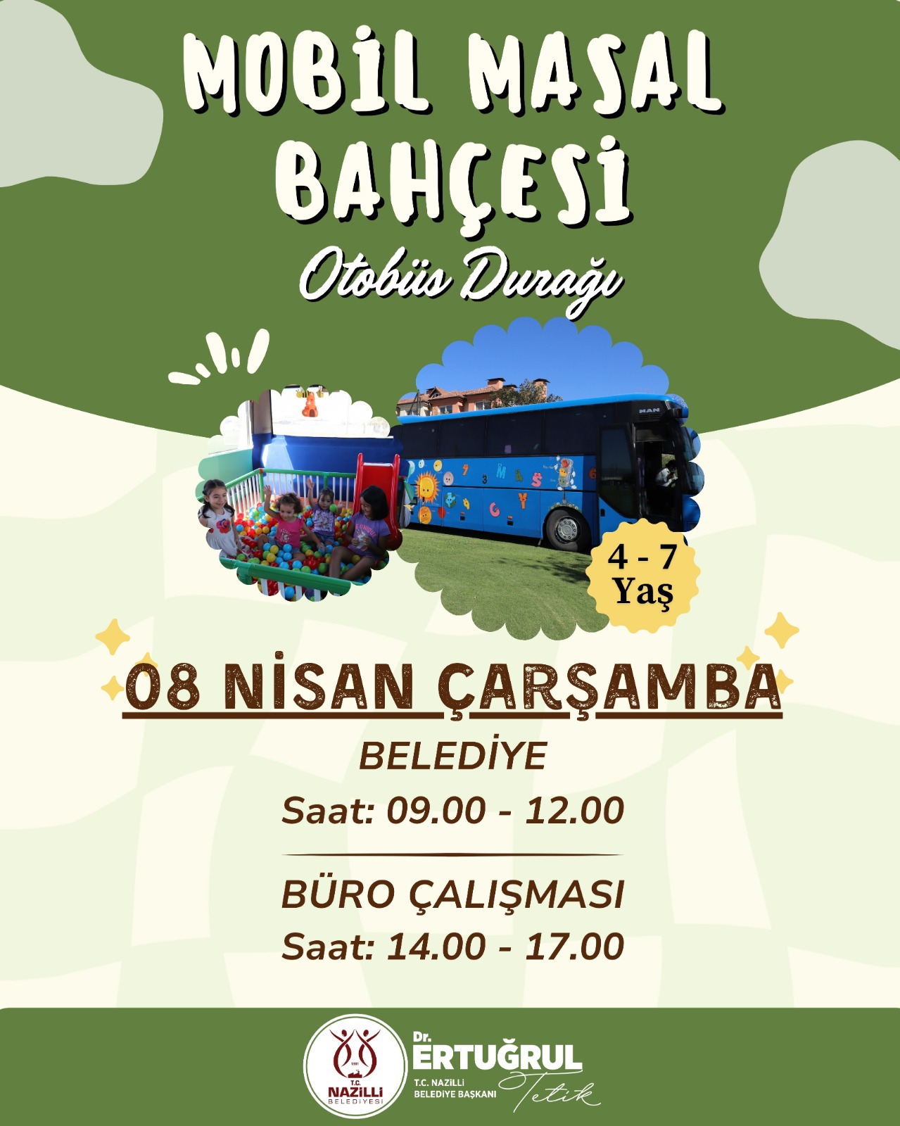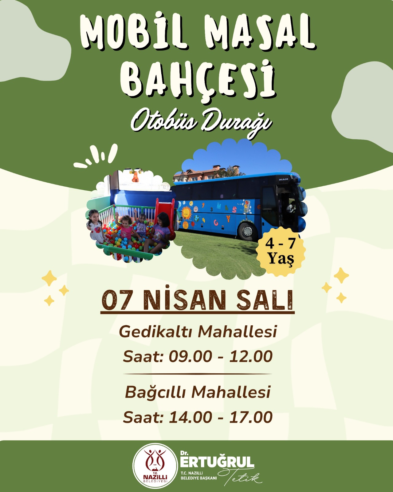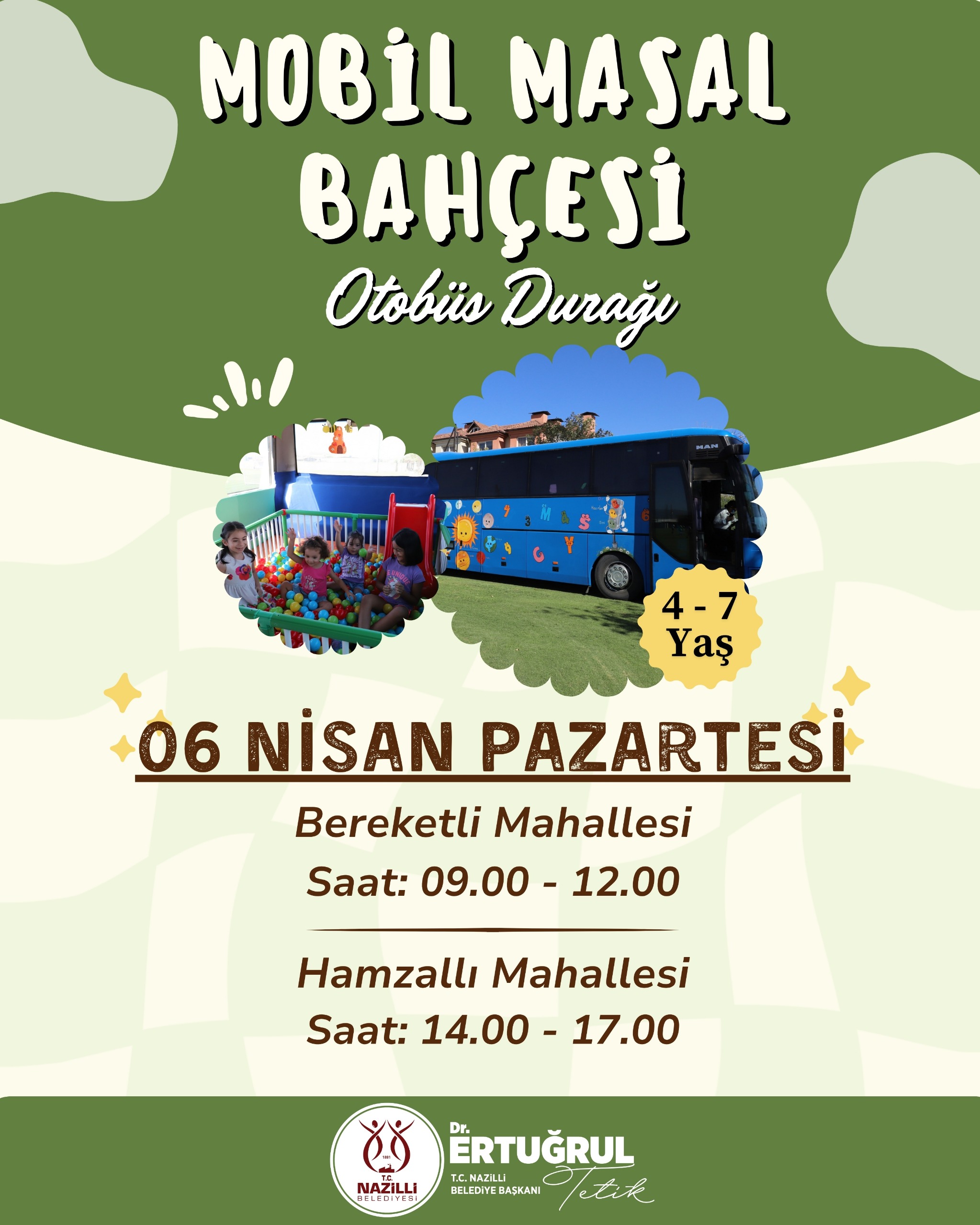 Nazilli Belediyesi tarafından özel olarak tasarlanan mobil oyun otobüsü, 6-10 Nisan tarihleri arasında ilçenin farklı mahallelerinde çocuklarla buluşacak.