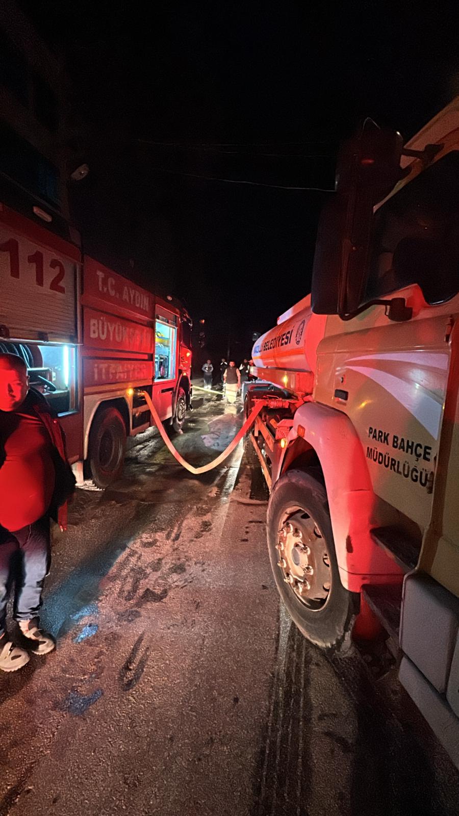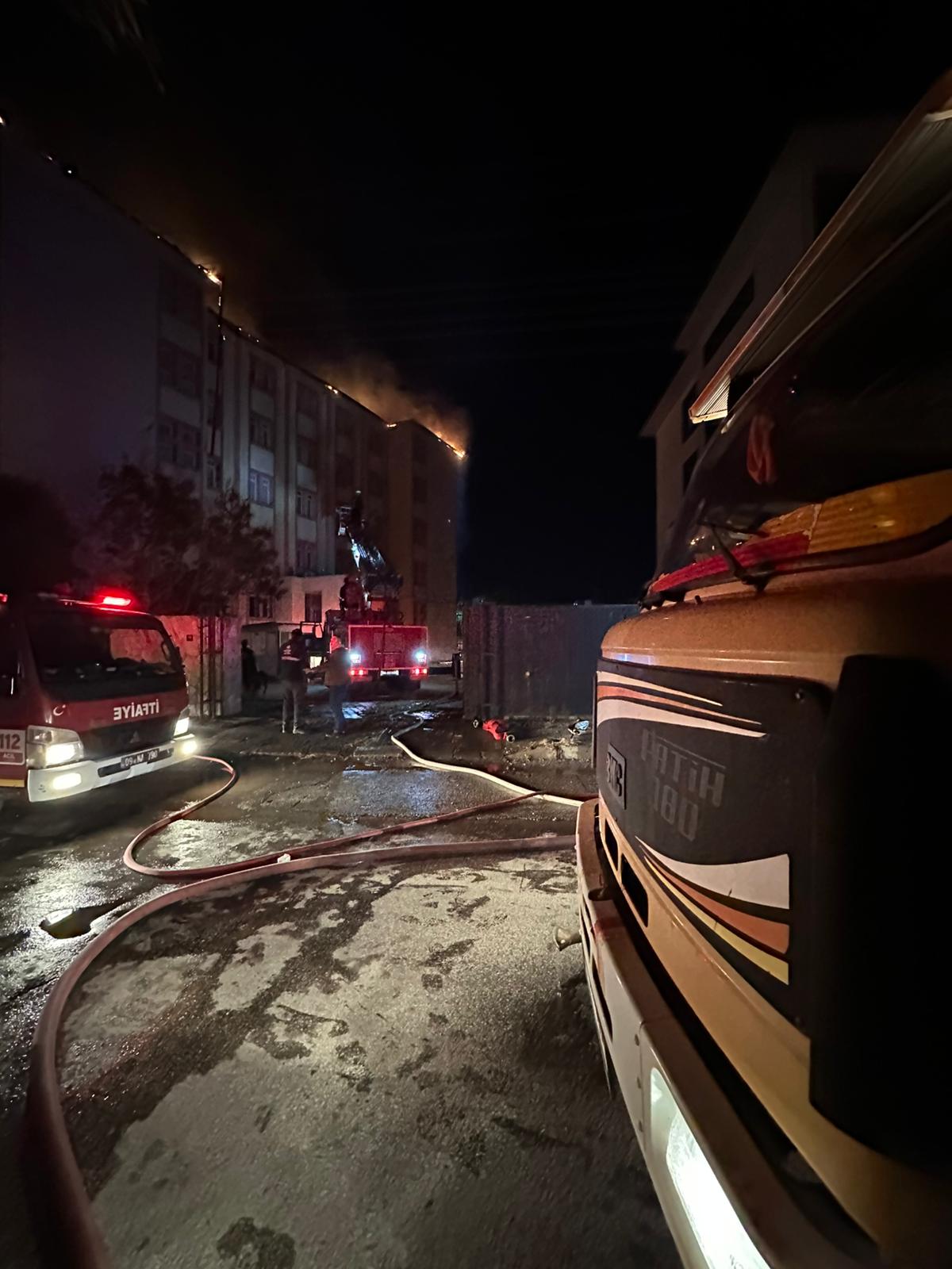 Nazilli Fen Lisesi yurdunda çıkan yangının söndürme çalışmalarına Nazilli Belediyesi ekipleri destek verdi